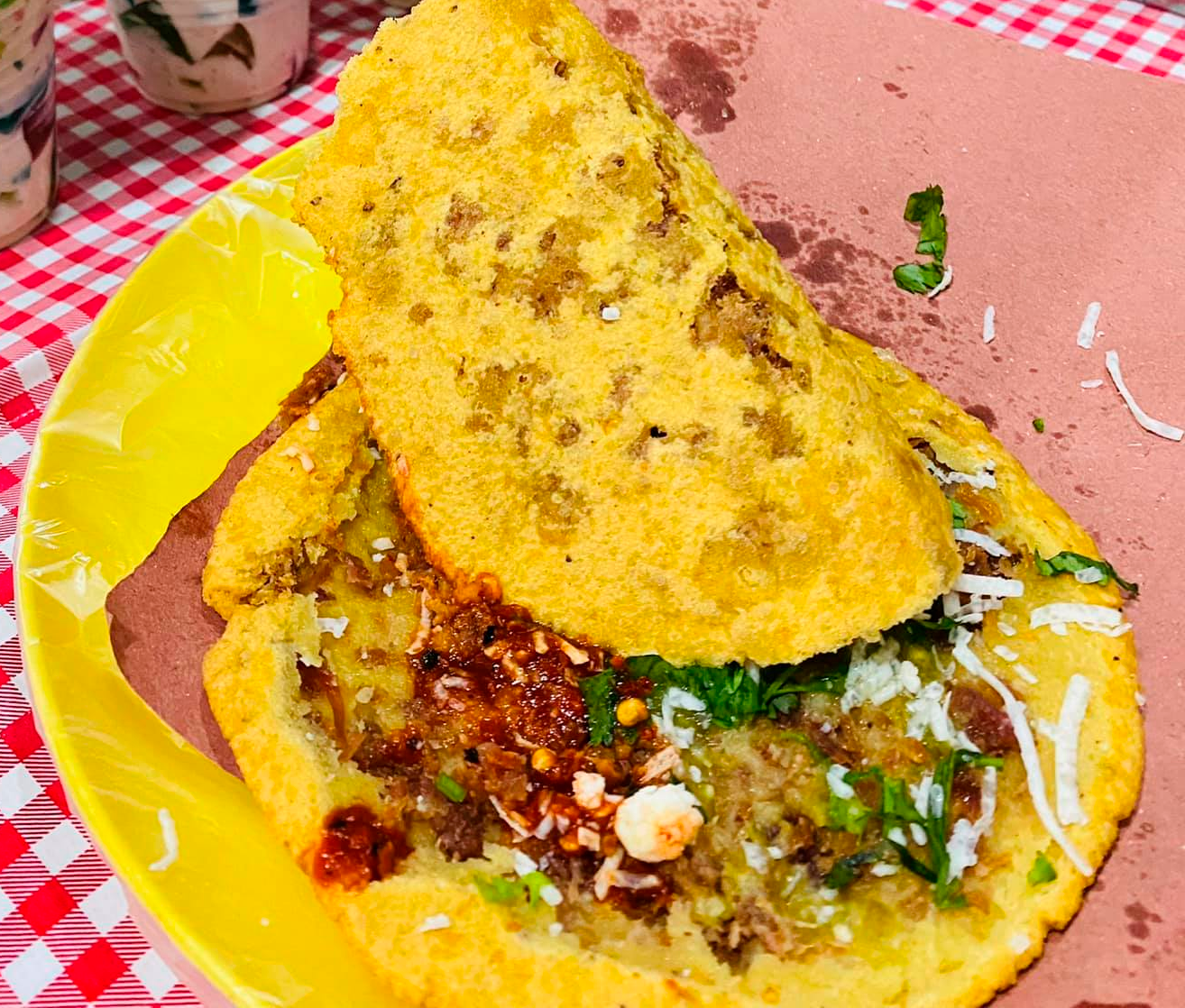 Cilantro, cebolla, y queso rallado, al gusto